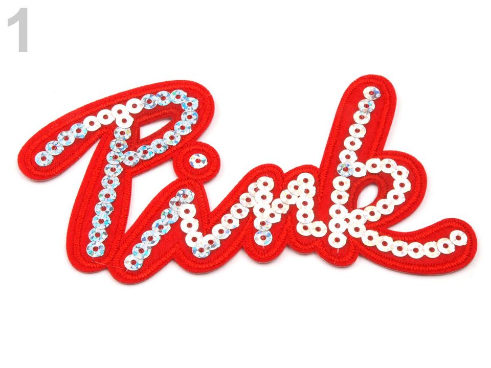 Aufbügler mit der Aufschrift "Pink" ist hier hauptsächlich für die Mädels. Interessant dank den glänzenden Pailletten.
