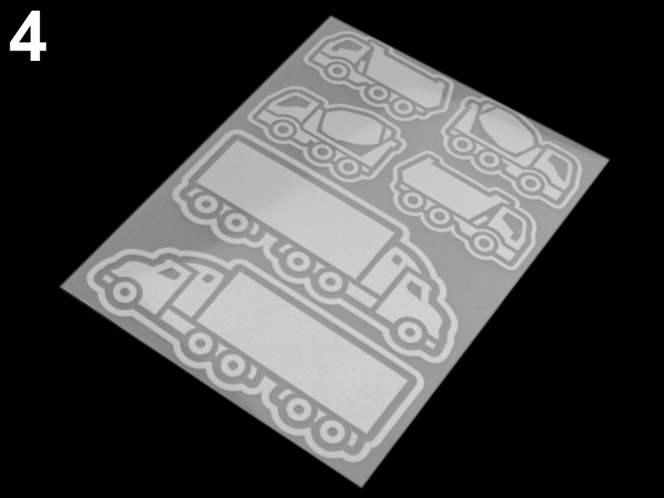 Anleitung: geeignet für Stoffe aus Baumwolle oder aus Mischung Baumwolle und Polyester. Das Motiv wird von der Folie ausgeschnitten. Beim Bügeleisen muss der Dämpfung ausgeschaltet sein. Das Motiv wird auf den Stoff gelegt, mit transparenter Folie nach oben, danach wird das Motiv mit Backpapier zugedeckt und 15 Sek. gebügelt (der Stufen wird nach Stoff geregelt). Nach der Abkühlung wird die Folie abgenommen. Das Motiv wird nochmals über Backpapier 5 Sek. gebügelt. Auf dem Motiv gibt es feine Struktur des Stoffes.