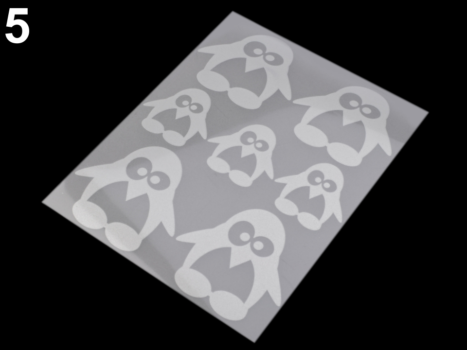 Anleitung: geeignet für Stoffe aus Baumwolle oder aus Mischung Baumwolle und Polyester. Das Motiv wird von der Folie ausgeschnitten. Beim Bügeleisen muss der Dämpfung ausgeschaltet sein. Das Motiv wird auf den Stoff gelegt, mit transparenter Folie nach oben, danach wird das Motiv mit Backpapier zugedeckt und 15 Sek. gebügelt (der Stufen wird nach Stoff geregelt). Nach der Abkühlung wird die Folie abgenommen. Das Motiv wird nochmals über Backpapier 5 Sek. gebügelt. Auf dem Motiv gibt es feine Struktur des Stoffes.