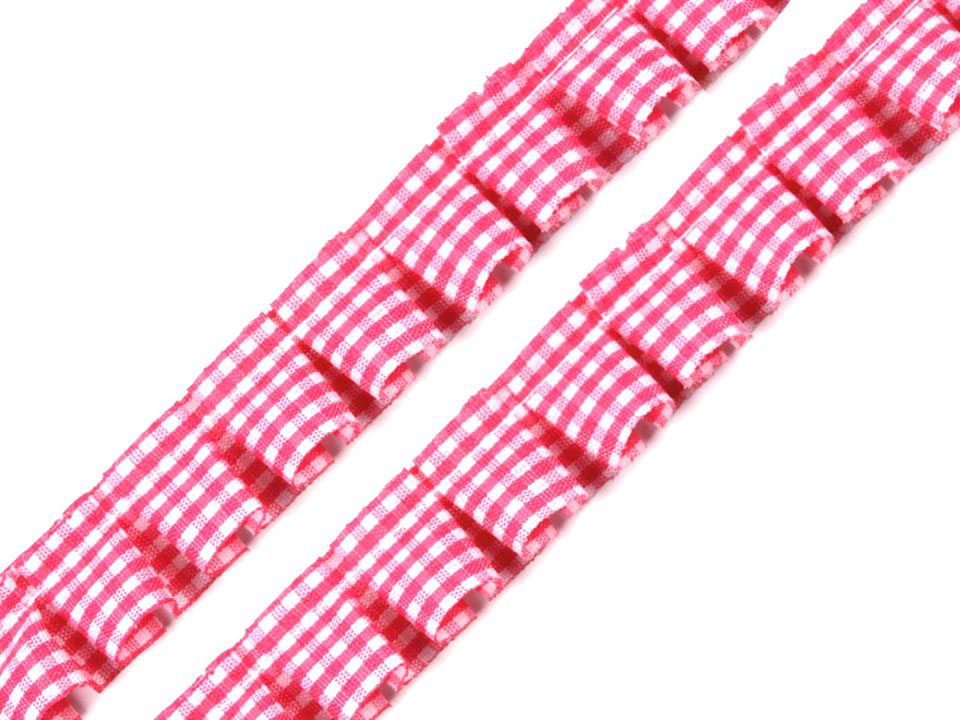 Karierte Rüschenborte aus Polyester. Hiermit verzieren Sie ganz einfach ihre Heimtextilien, Kinderbekleidung, u.s.w.