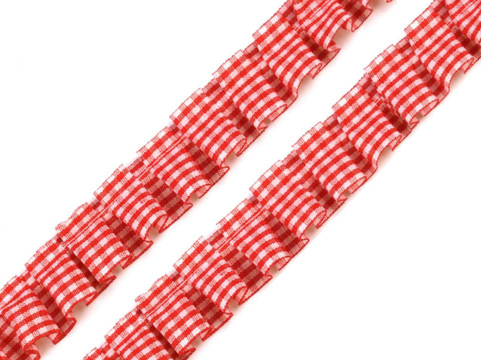 Karierte Rüschenborte aus Polyester. Hiermit verzieren Sie ganz einfach ihre Heimtextilien, Kinderbekleidung, u.s.w.