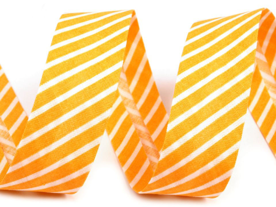 Gestreiftes Schrägband ist aus 100% Baumwolle hergestellt. Das Band ist fest und eingebügelt.