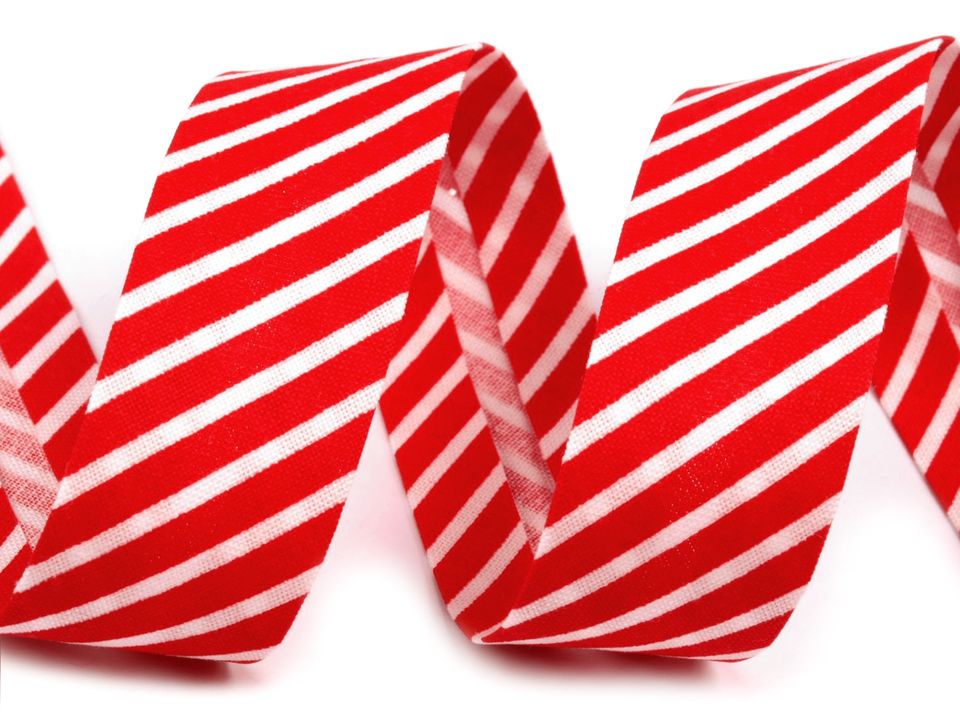 Gestreiftes Schrägband ist aus 100% Baumwolle hergestellt. Das Band ist fest und eingebügelt.