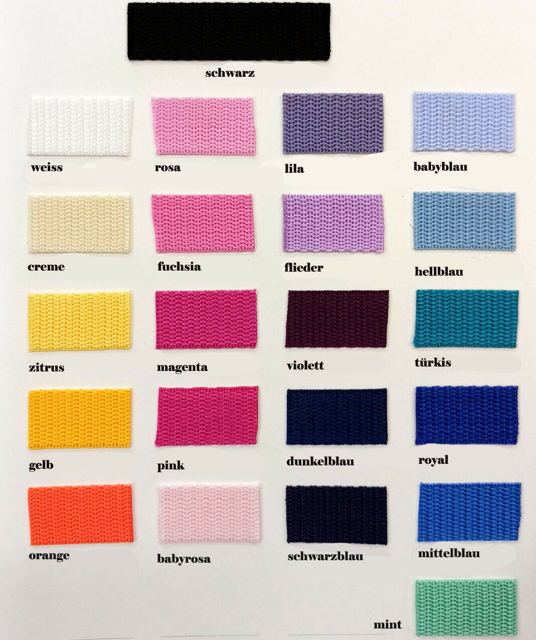 Stabiles, festes und qualitativ sehr gutes Gurtband in tollen Farben. Für alle Taschen, Rücksäcke sowie Hundebedarf und Hobbybedarf geeignet.