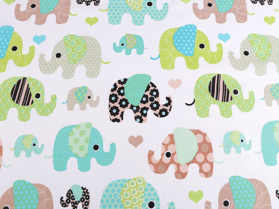 Baumwollstoff Elefanten Elefantenstoff mint-braun