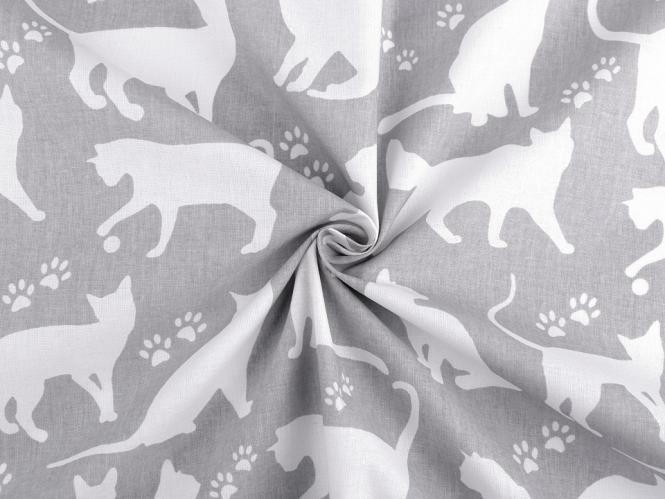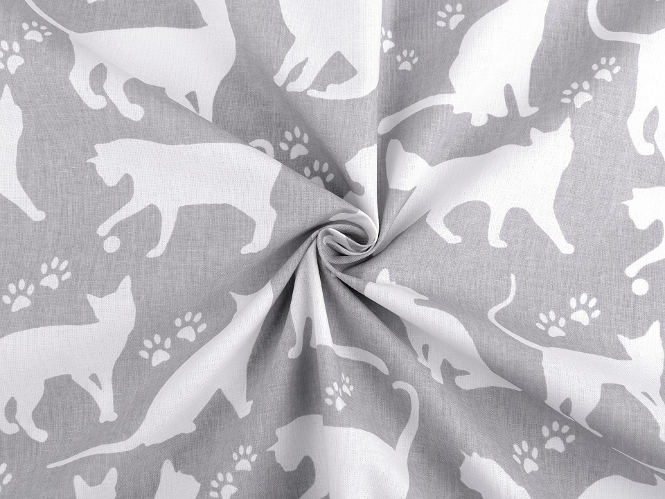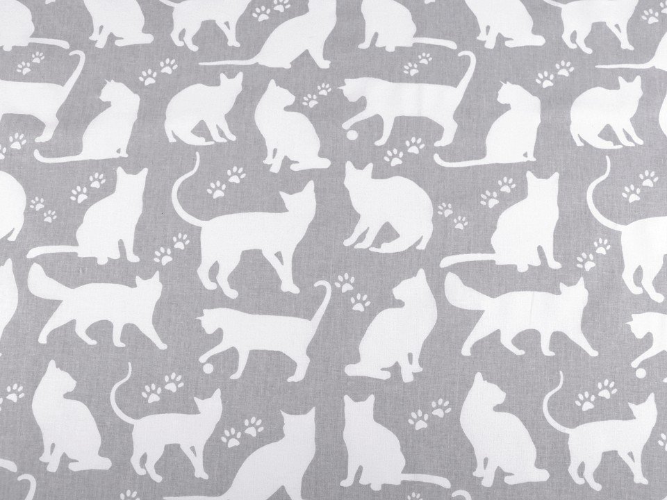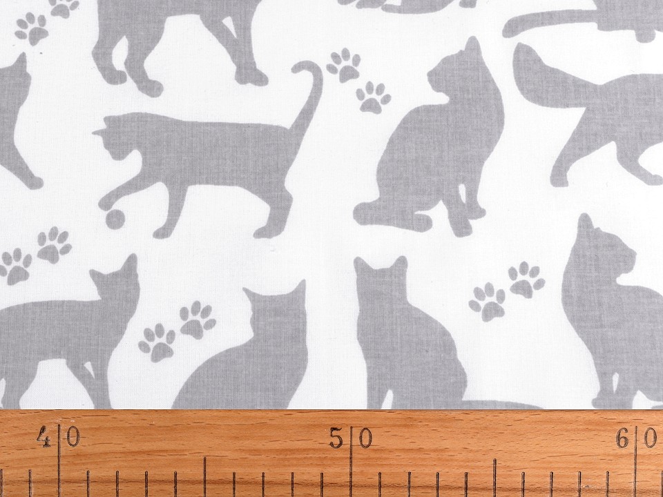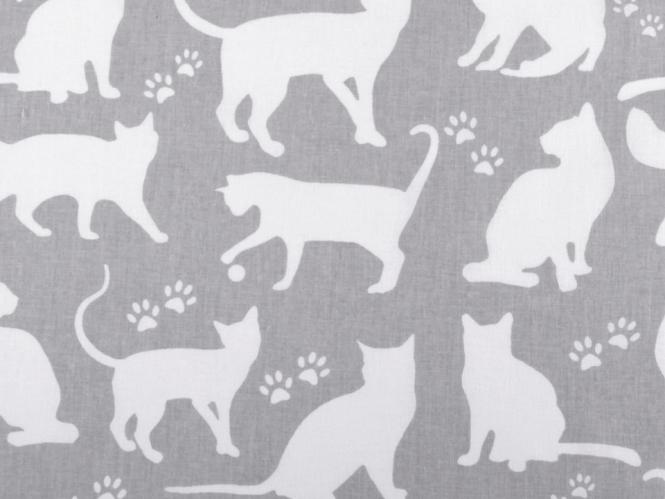 Baumwollstoff Katzen Katzenstoff grau-weiss