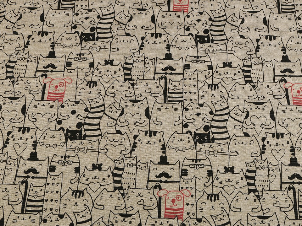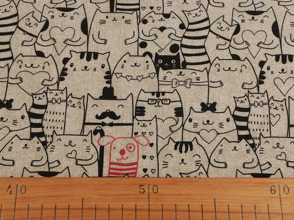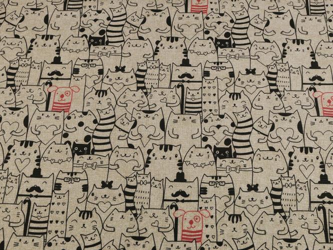 Baumwollstoff Katzenstoff Hunde beige schwarz