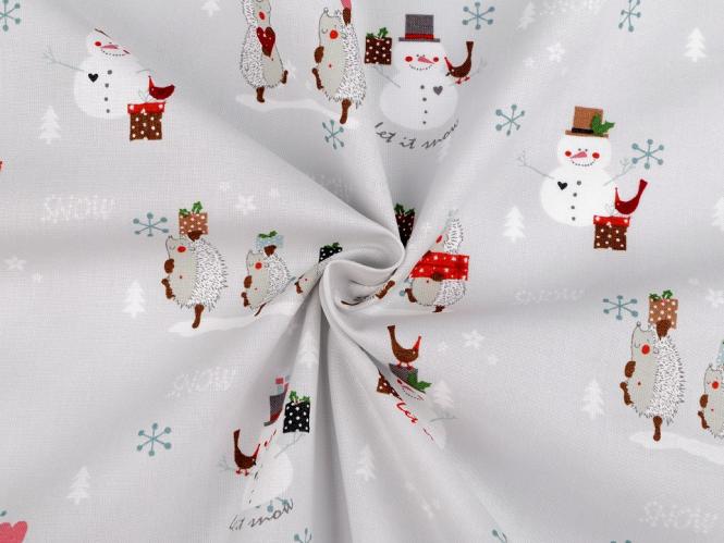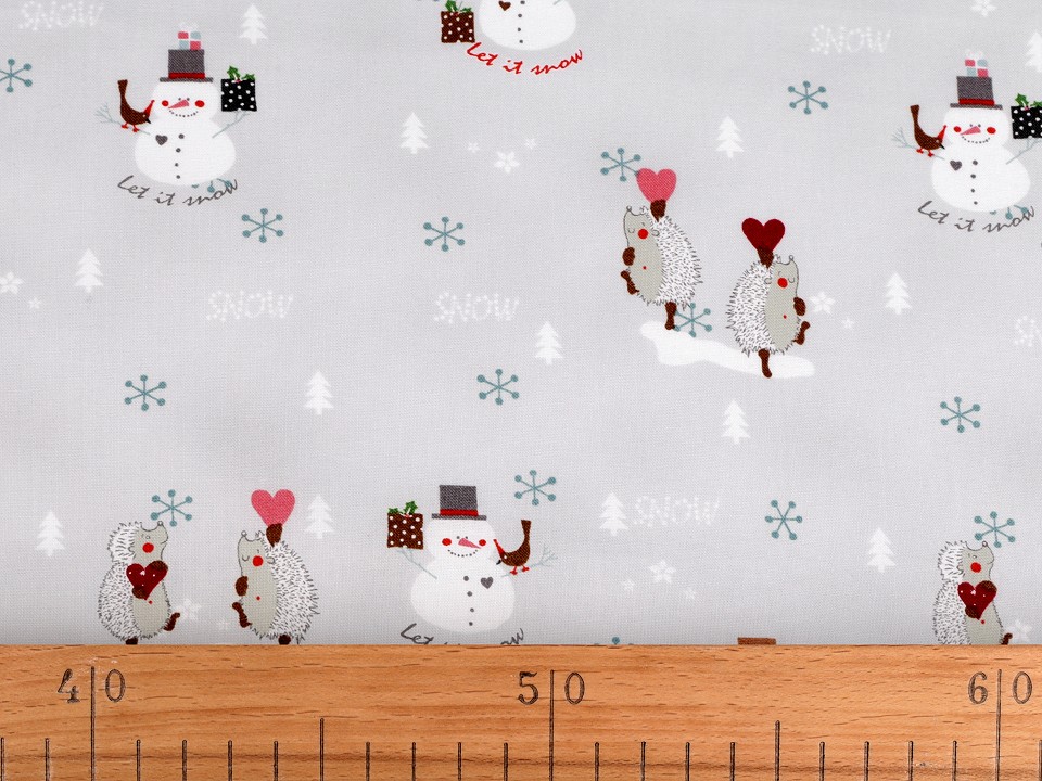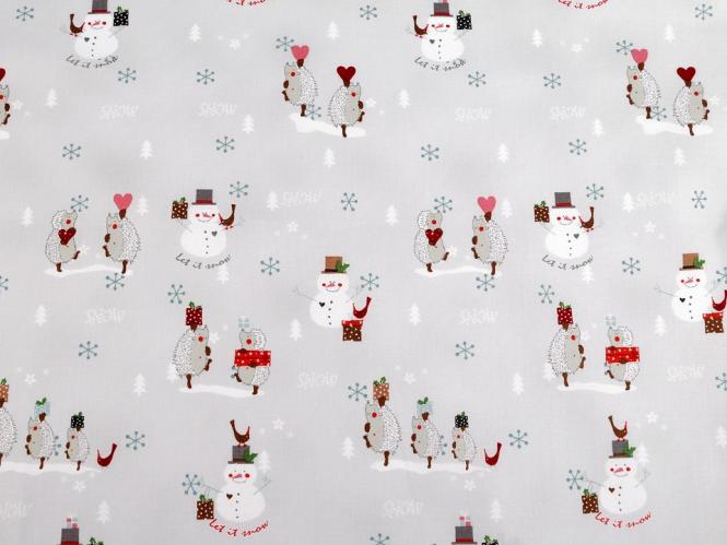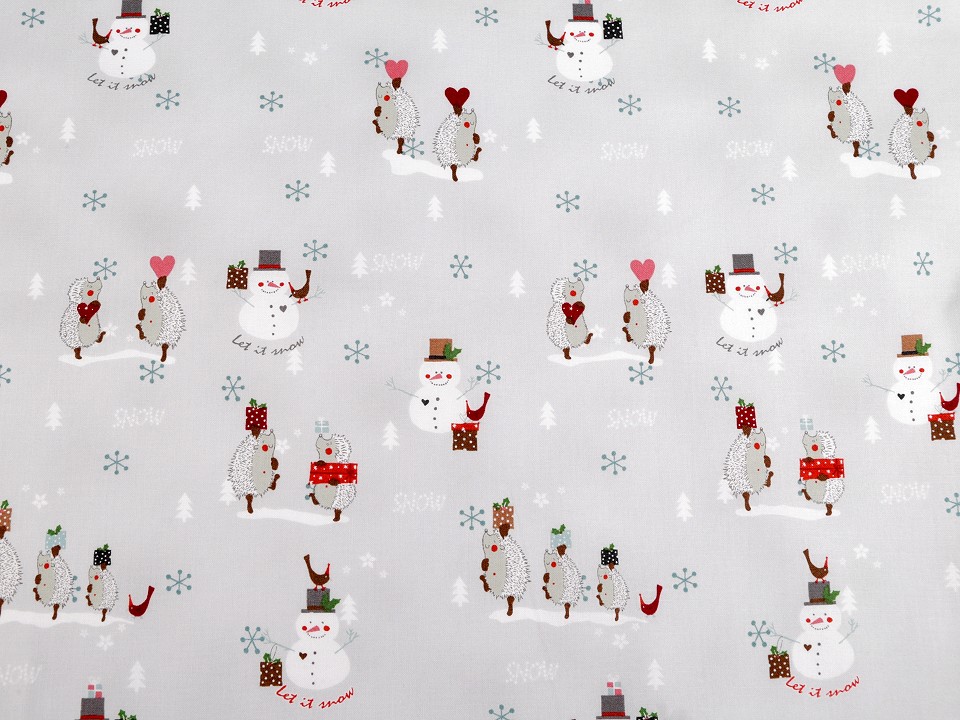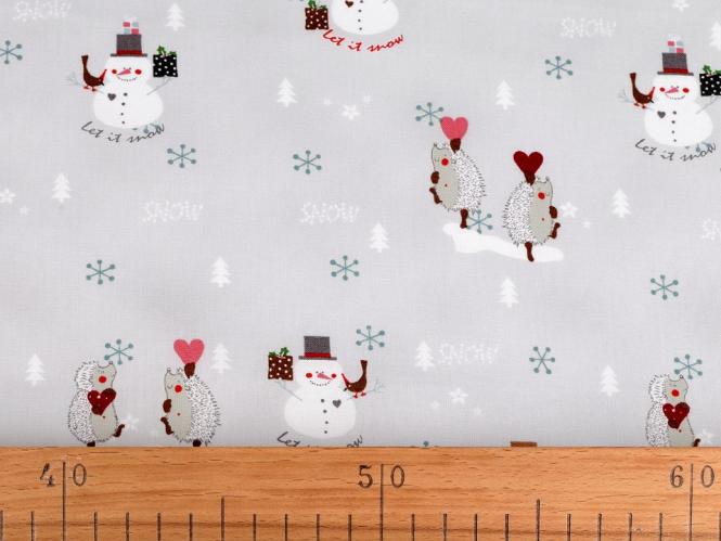 Baumwollstoff Weinachtsmotiv Schneemann Igel