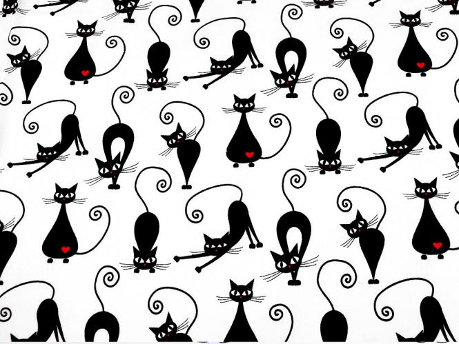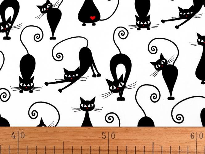 Baumwollstoff mit Katzenrmotiv schwarz-weiss