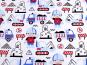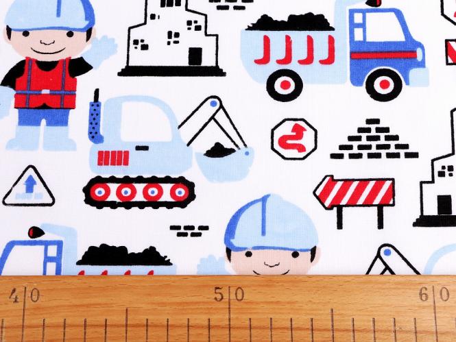Baumwollstoff mit Kindermotiv Kinderstoff Baustelle rot-blau