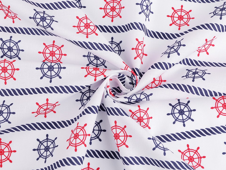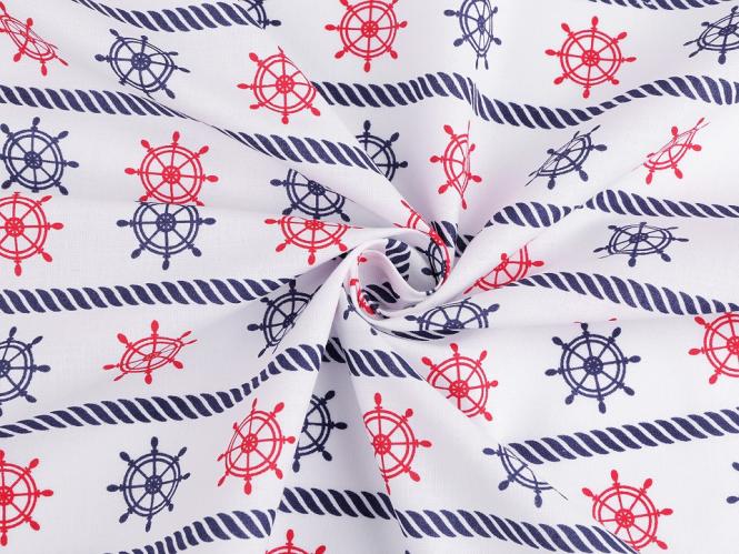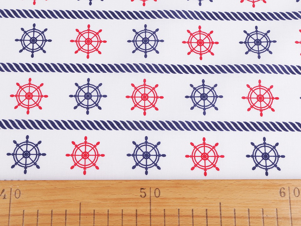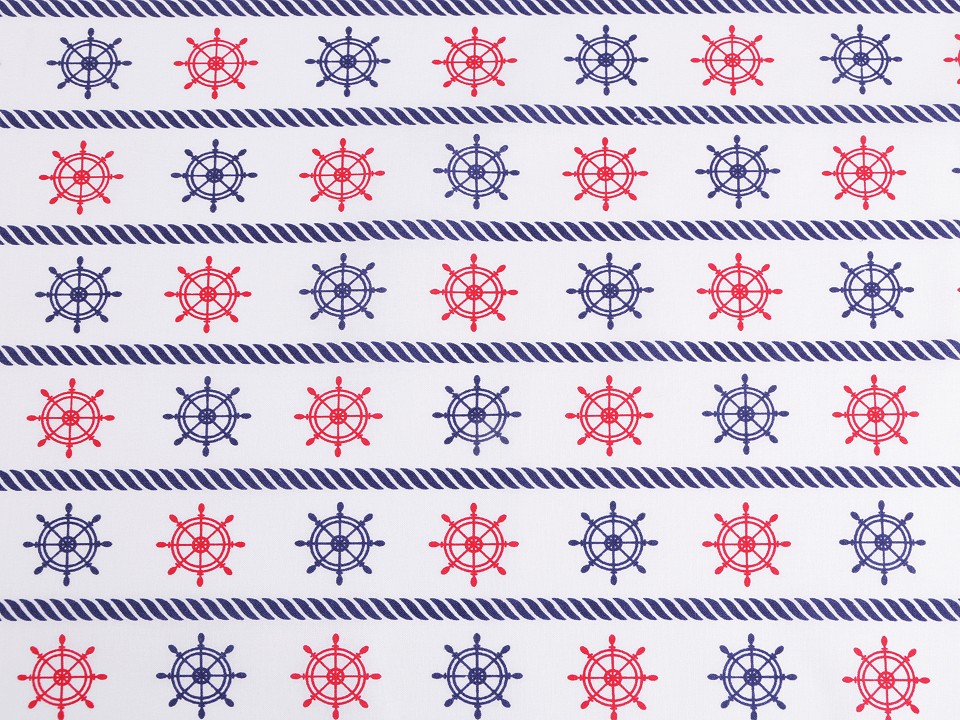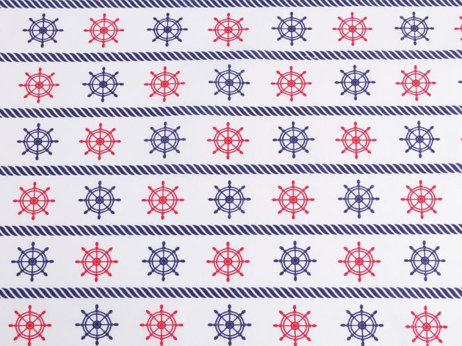 Baumwollstoff mit Steuerrad Maritim rot-blau-weiß
