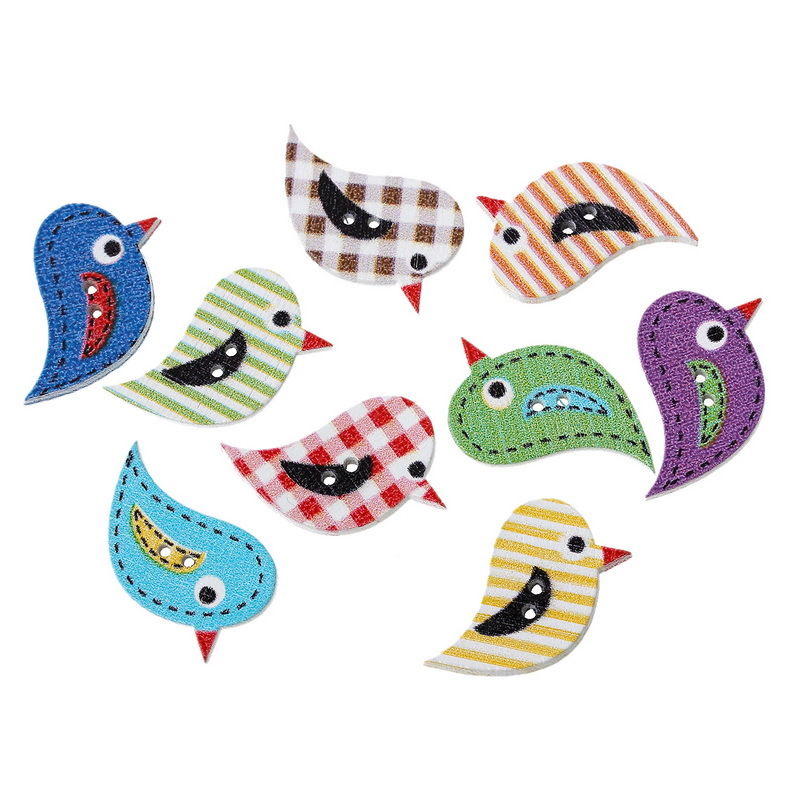 10 Holzknöpfe Vögel Mix