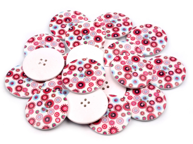5 Holzknöpfe Blumen Größe 60 Mandala