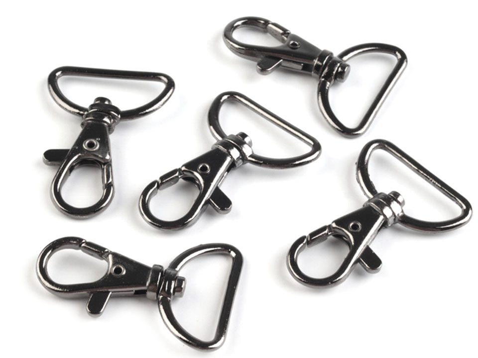 Metallkarabiner ist drehbar. Zu verwenden bei der Herstellung von Schlüsselbänder, als Taschengurband, Rucksackträger, Hundehalsbänder - und Leinen.