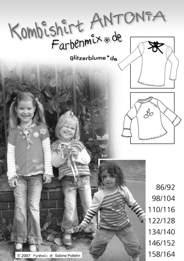 Mehrgrößenschnittmuster, Größen: 86/92, 98/104, 110/116, 122/128, 134/140, 146/152, 158/164