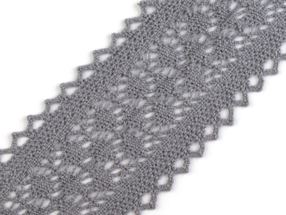 Klöppelspitze aus Baumwolle mit effektvollem Muster. Sie sollte unter einen Tuch gebügelt werden.