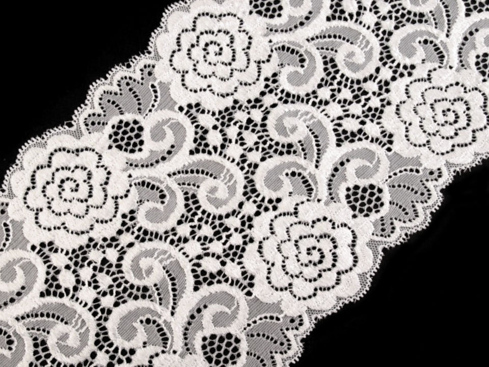 Diese elegante Spitze ist elastisch und mit feinen Blumenmotiven verziert.