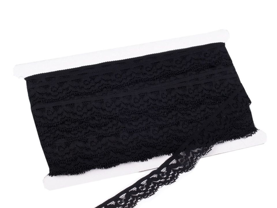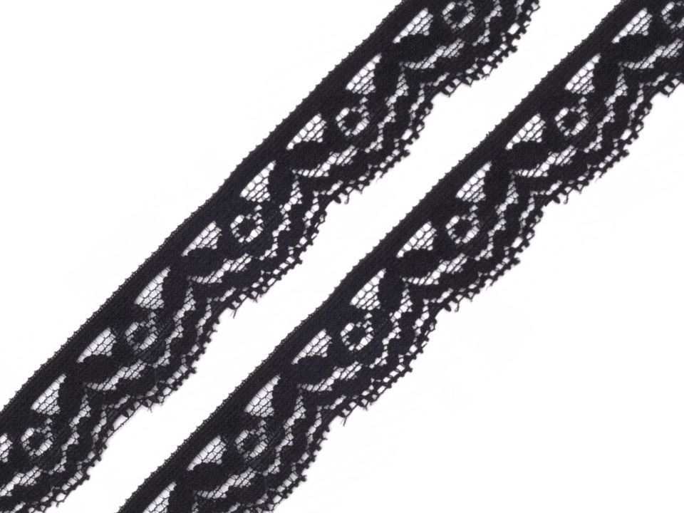 Elastische Spitzeborte aus Polyamid mit Elasthan. Breite 20 mm. Geeignet als Verzierung für Unterwäsche, Tops, Blusen oder für