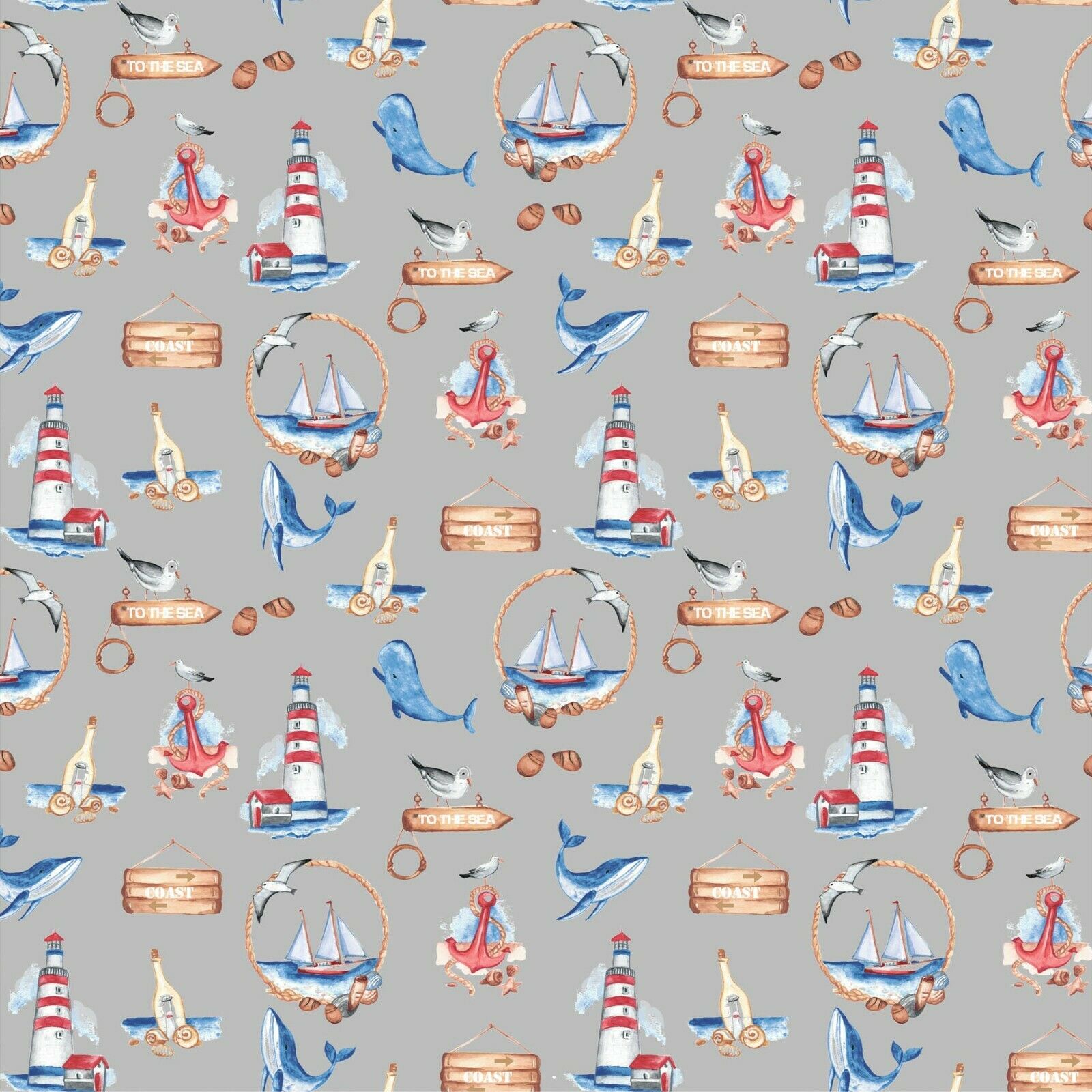 Baumwollstoff Anker Maritim grau Digitaldruck