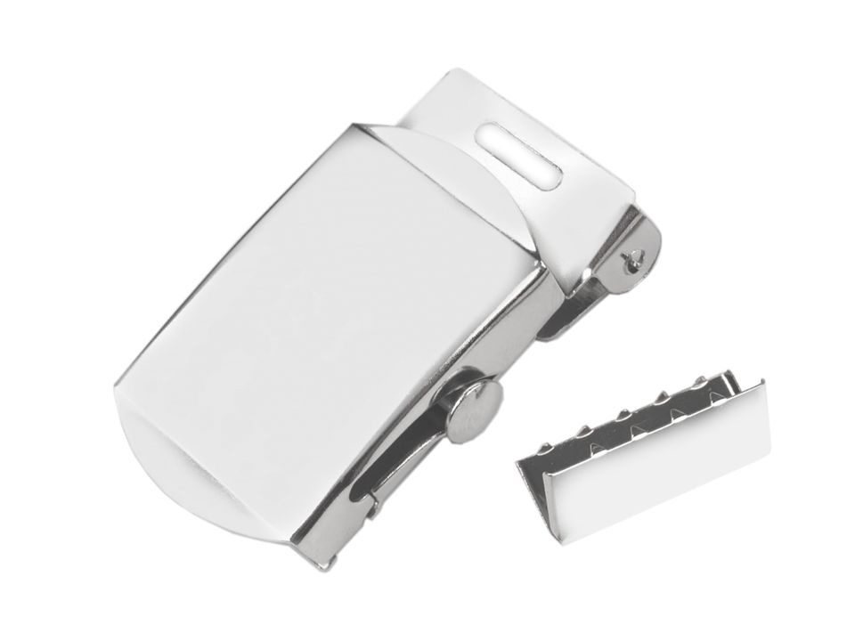 Gürtelschnalle aus Metall mit Endstück ist zur Herstellung von (Stoff)Gürteln bestimmt. An einer Seite gibt es Zähnchen, die den Gurt halten und fixieren. Das Endstück ist mit der Zange am Ende des Gürtels zu befestigen.